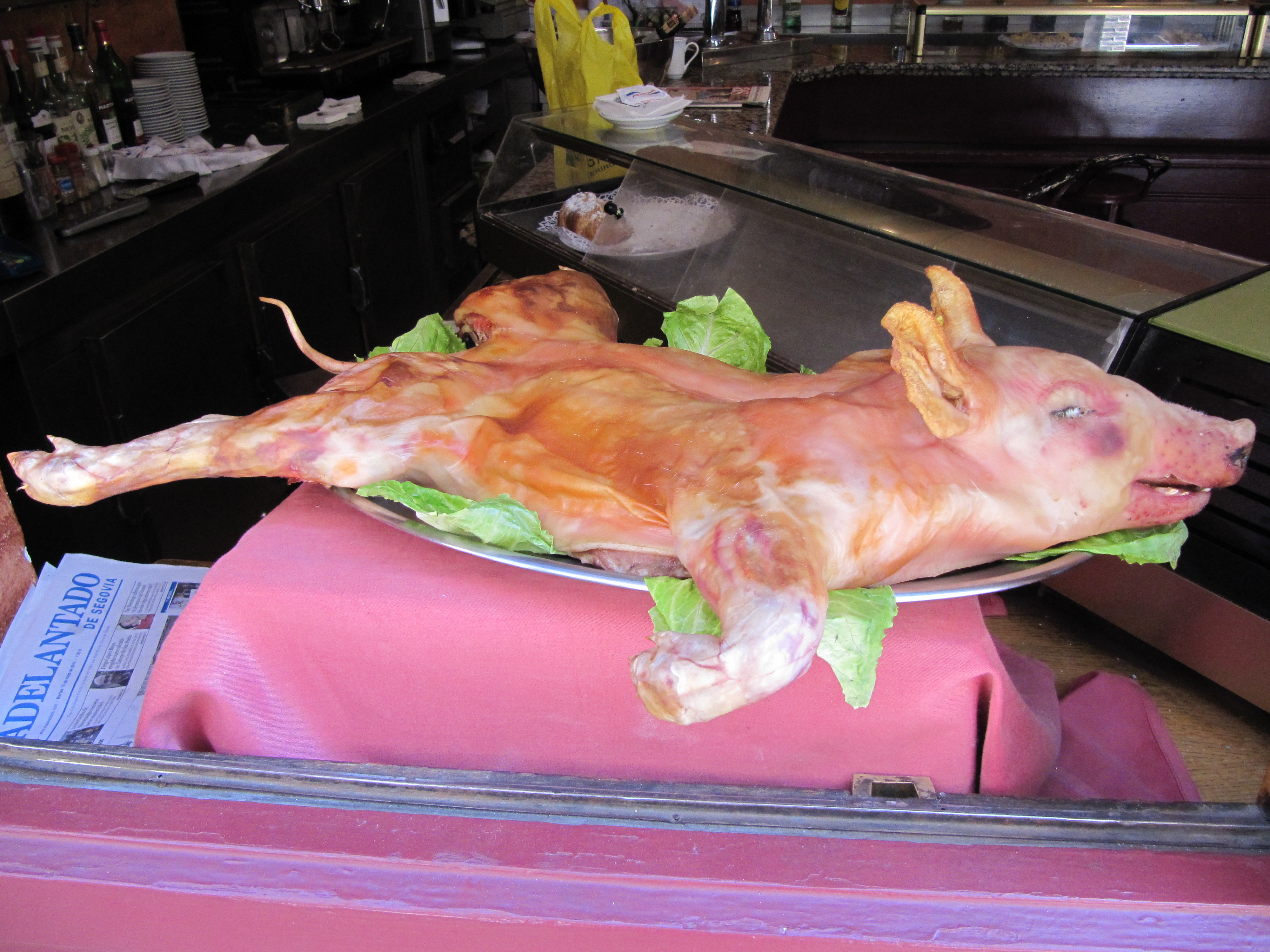 Keinesfalls sollte man die Spezialität der regionalen Küche, das Cochinillo de Cerdo versäumen: sehr kleine Spanferkel im Spezialofen gebacken. Eine normale Portion ist ein Viertel vom leckeren Ferkel.