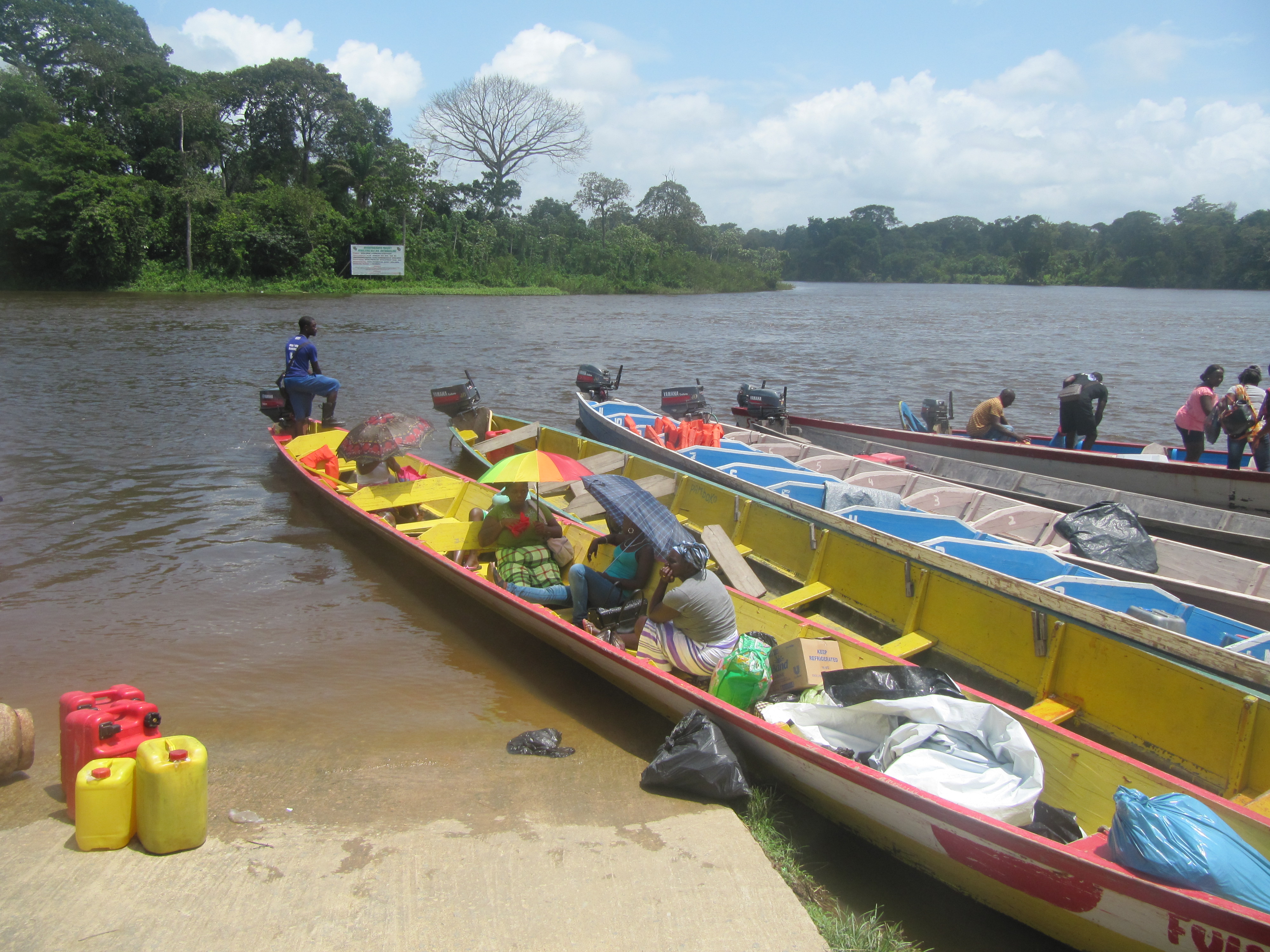 Die Weiterreise erfolgt in mit 40 PS motorisierten schnellen Holzbooten, den Koreals. Der Platz reicht für ca. 10 Passagiere oder allerlei Waren, vom Kühlschrank bis zum Bier.