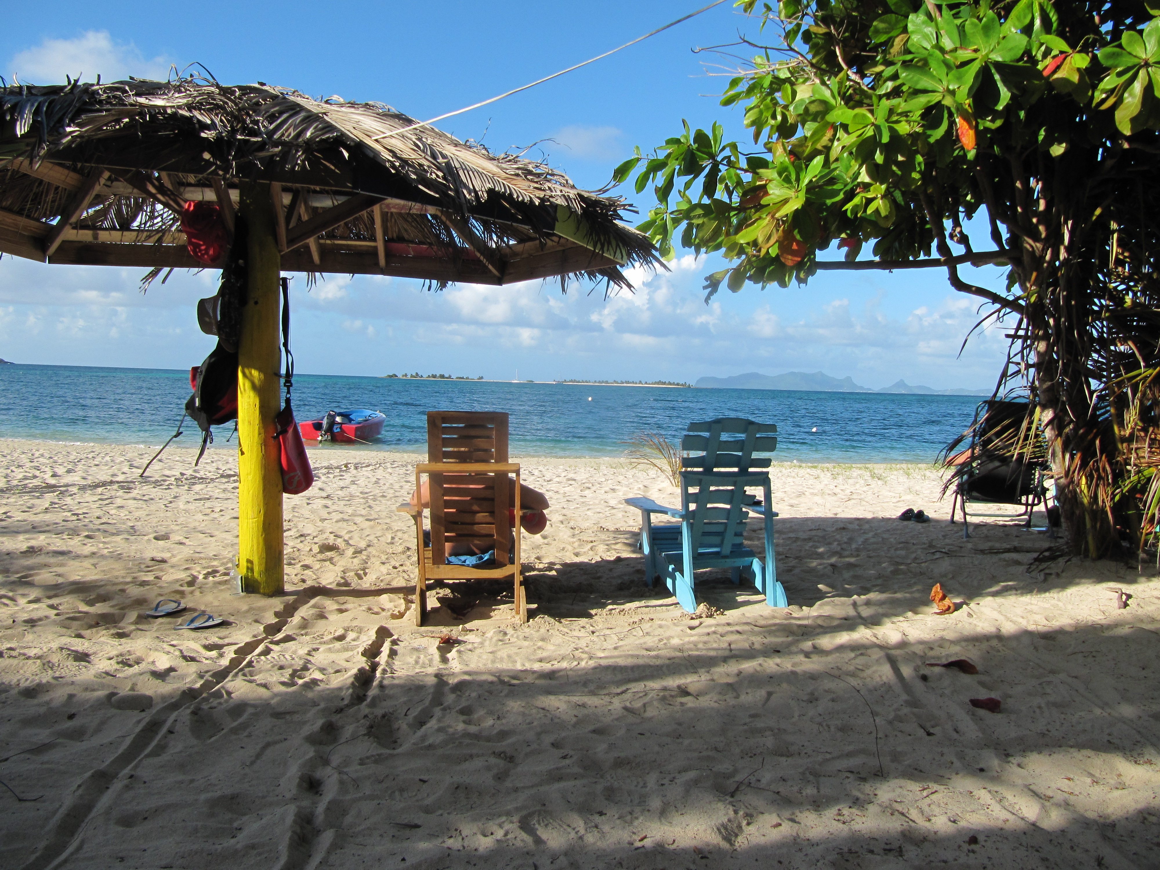 Der Skipper nutzte die Schlechtwettertage, um den Rumpf der Barbaco auf Rost zu kontrollieren und wenn nötig zu beseitigen. Trotz der feuchten Witterung ist das Schiffsinnere hier in der Karibik – im Gegensatz zu Suriname – erstaunlich trocken, was für die weitere Behandlung mit Rostschutzgrundierung optimal war.