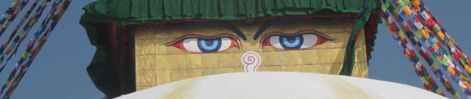 Am Nachmittag fuhren wir mit dem Taxi auf einen Hügel am Westrand der Stadt, wo die alles sehenden Augen Buddhas vom Swayambhunath – Stupa, dem ältesten nepalesischen Stupa (15Jh) aus das Kathmandutal beobachten. In einer kleinen Pagode stehen Buddhisten wie Hindus Schlange, um durch ihre Opfergaben und Geldspenden den Segen und Schutz vor Krankheiten zu erbitten.