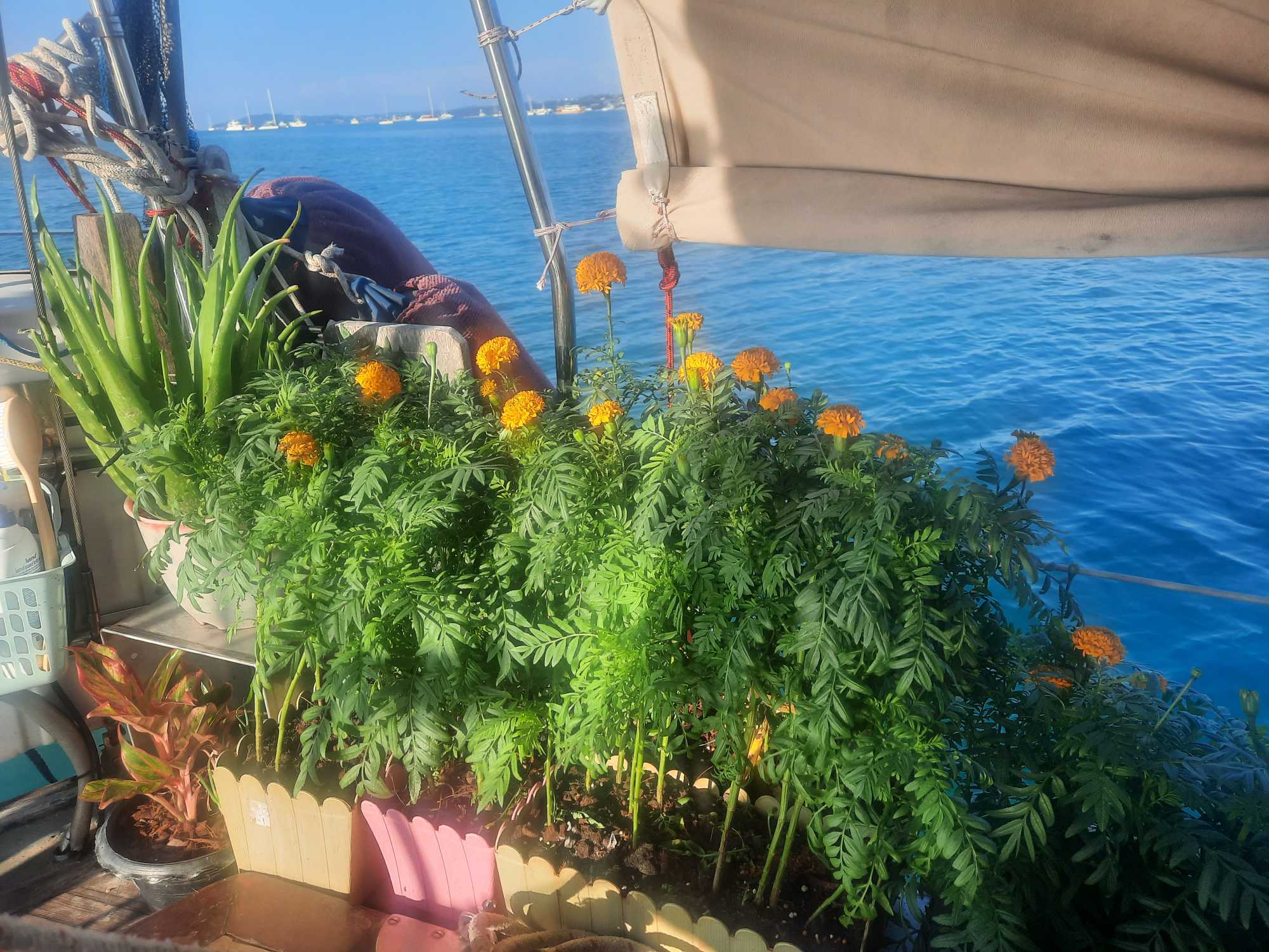 So ist die Barbaco zu unserer Ferienwohnung geworden, inklusive Laddas Blumenkästen, in denen sich mittlerweile sogar eine Wassermelone und Orangen – „Bäume“ wohl fühlen.