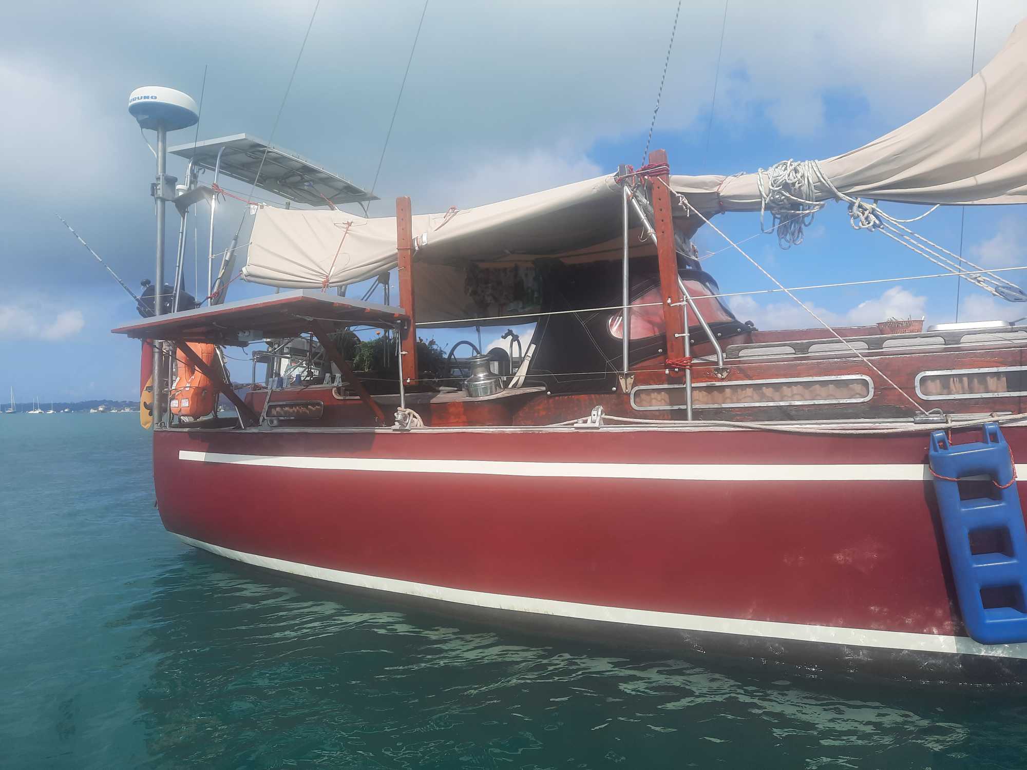 Die neuen Solarzellen sind an Steuerbord und Backbord auf einem Gestell montiert und funktionieren einwandfrei. Bei Bedarf, beispielsweise im Hafen oder beim Kranen, können sie herunter geklappt werden.
