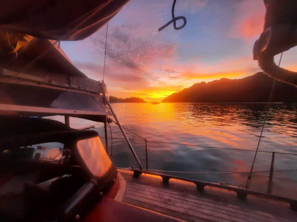 Leider kamen wir erst im Dunkeln an und die einzige, uns von der Hinreise nach Malaysia her bekannte, Boje war von einem anderen Segelschiff belegt.