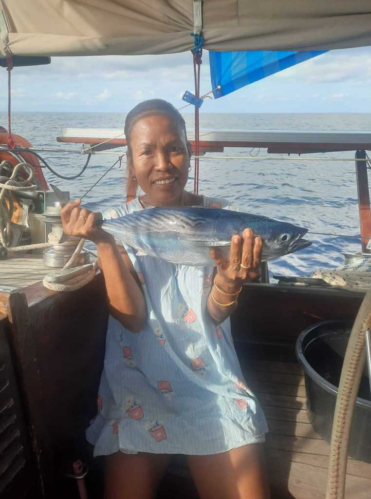 Am zweiten Tag der Reise hatten wir mehr Glück! Ein 52 cm langer Thunfisch hatte angebissen.