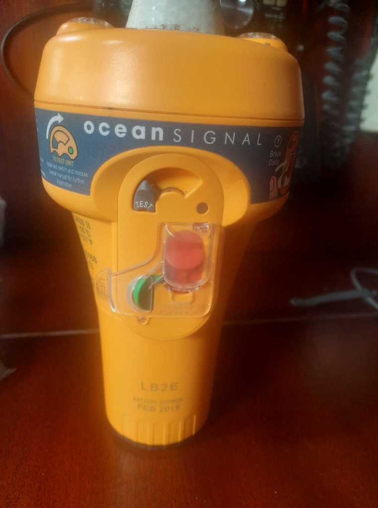 Beim Einbau am Kartentisch passierte mir allerdings ein kleines Missgeschick mit der Seenotbarke (EPIRB), die am Kartentisch ebenfalls ihren Platz hat.