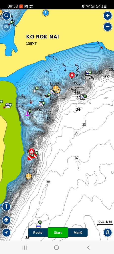 So irrten wir 20 Minuten mit der Barbaco umher. Ich wollte schon aufgeben und in Richtung Phuket weiter fahren, als Ladda zum Glück doch noch eine Boje weitab vom Riff entdeckte.