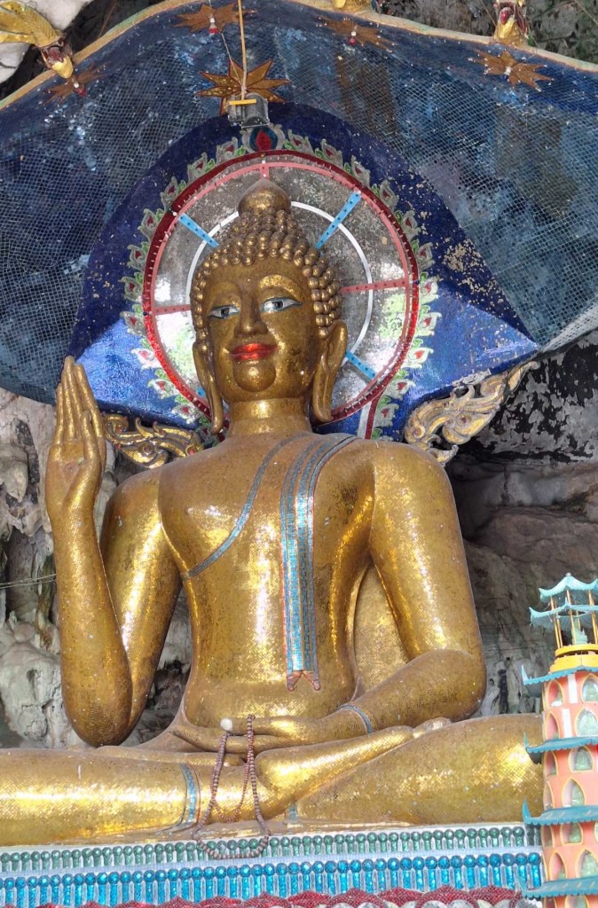 Gleich daneben kann man in einer Höhle eine schöne goldene Buddhastatue bewundern.